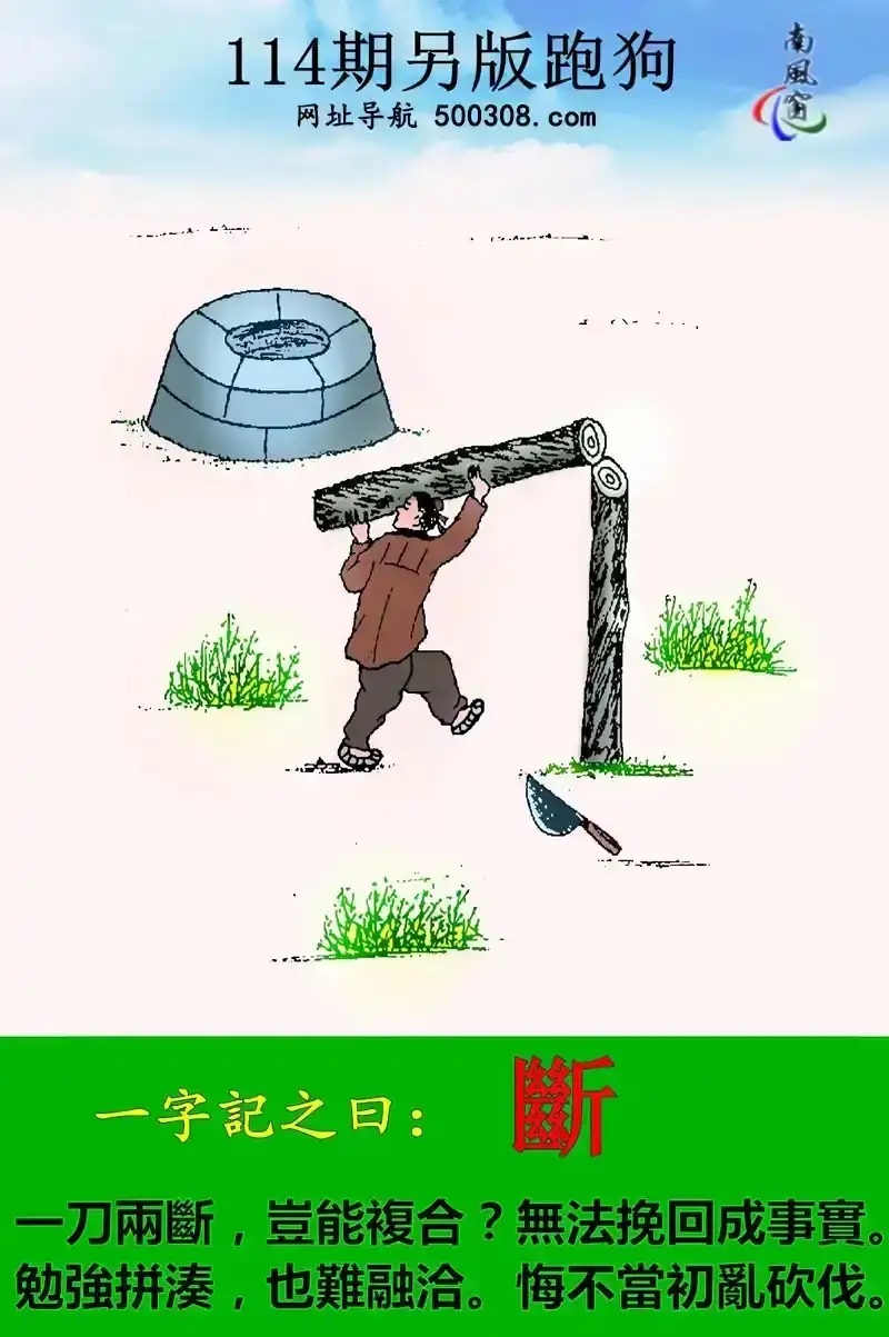114期另版跑狗玄機:【斷】一刀兩斷,豈能複合?無法挽回成事實。勉強拼湊,也難融洽。悔不當初亂砍伐。...